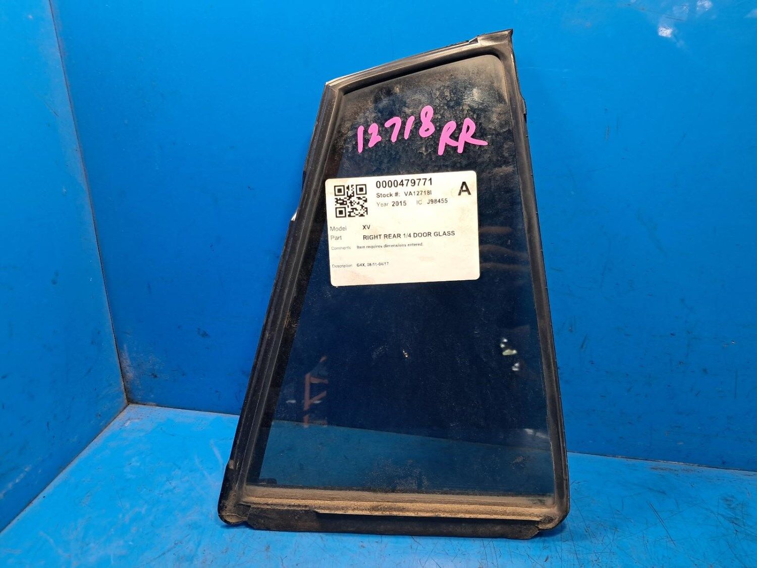 SUBARU XV G4X, RIGHT REAR 1/4 DOOR GLASS