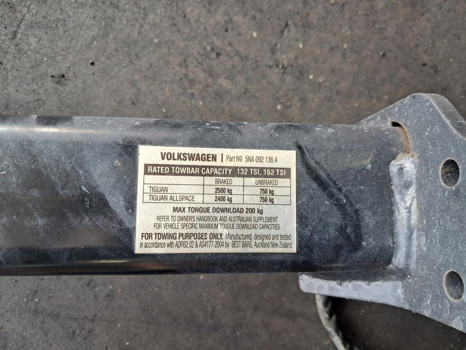 VOLKSWAGEN TIGUAN  5NA, TOWBAR